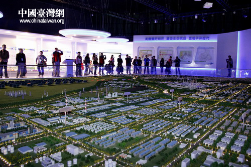 10月23日,“感知甘肅”第四屆網(wǎng)絡(luò)媒體采訪團(tuán)參觀考察金昌市循環(huán)經(jīng)濟(jì)發(fā)展?fàn)顩r。 圖為采訪團(tuán)記者參觀金昌市循環(huán)經(jīng)濟(jì)展覽館所展出的城市規(guī)劃圖及沙盤。 (中國(guó)臺(tái)灣網(wǎng) 董憲超 攝)