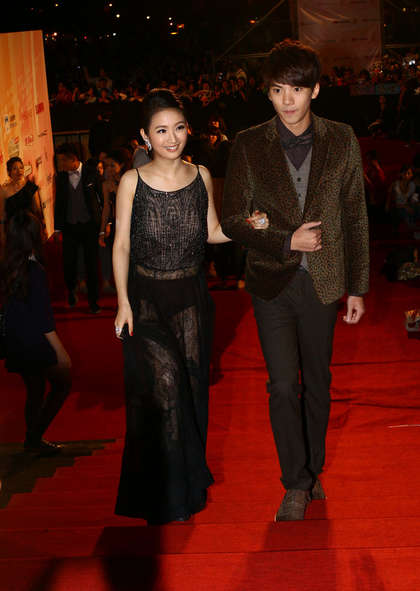 林依晨(左)走紅毯時身著透明網(wǎng)紗禮服。(圖片來自臺媒)