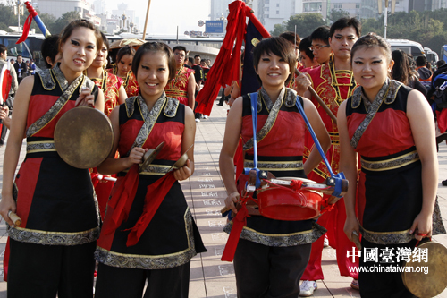 在祈福活動(dòng)上進(jìn)行表演的臺(tái)灣大學(xué)的學(xué)生們。(中國(guó)臺(tái)灣網(wǎng) 陳睿 攝)