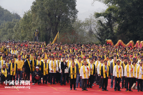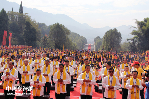 來自臺灣的信眾向炎帝行三跪九叩大禮。(中國臺灣網(wǎng) 陳睿 攝)