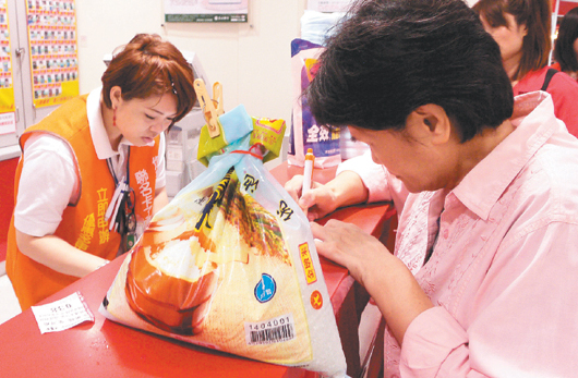 金墩米傳農(nóng)藥殘留超標(biāo),昨天高雄許多賣場都有民眾拿著吃到一半的米辦理退貨。(圖片來源:臺灣《聯(lián)合報(bào)》)