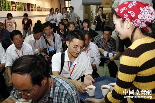 參訪團(tuán)品嘗臺灣“日月茶廠”知名紅茶。(中國臺灣網(wǎng) 于斯文 攝)