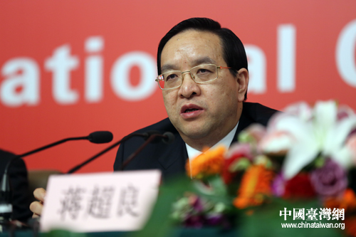 中國(guó)農(nóng)業(yè)銀行董事長(zhǎng)、黨委書(shū)記蔣超良回答記者提問(wèn)。(中國(guó)臺(tái)灣網(wǎng) 王偉 攝)