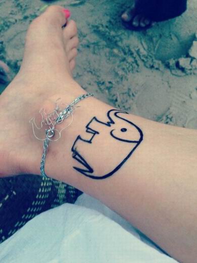 陳意涵白皙的腳踝處出現(xiàn)一只卡通大象的圖案。取自陳意涵微博