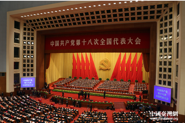 11月14日,中國共產黨第十八次全國代表大會閉幕會在北京人民大會堂舉行。 圖為大會會場。(中國臺灣網 王偉 攝)