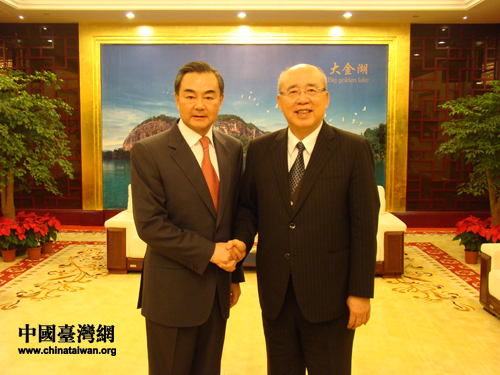 中國(guó)臺(tái)灣網(wǎng)11月20日福建三明消息 中共中央臺(tái)辦主任王毅20日在福建三明會(huì)見(jiàn)了中國(guó)國(guó)民黨榮譽(yù)主席吳伯雄,雙方就推進(jìn)兩岸關(guān)系發(fā)展交換了意見(jiàn)。