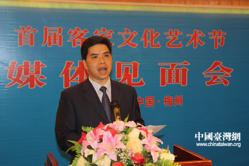 11月22日,梅州市舉辦媒體見面會,梅州市副市長李遠青宣布首屆世界客家文化藝術(shù)節(jié)將于明天開幕(中國臺灣網(wǎng)記者 蕪?fù)?nbsp;攝)