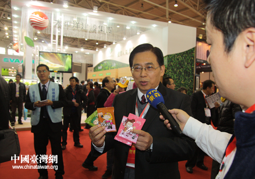 嘉賓接受臺(tái)灣東森電視臺(tái)采訪。(中國(guó)臺(tái)灣網(wǎng) 李瑞艷 攝)