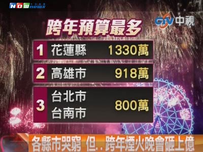 雖然各縣市政府哭窮,但跨年煙火晚會預(yù)算持續(xù)編列,第一名花蓮縣高達1330萬新臺幣。(圖片來源:臺灣“今日新聞網(wǎng)”)