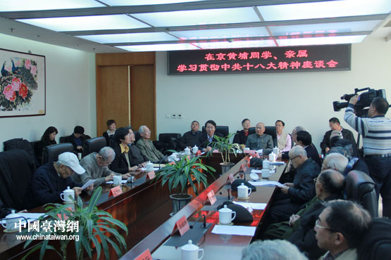 中國臺灣網(wǎng)11月27日北京消息 11月27日上午,黃埔軍校同學(xué)會和北京市黃埔軍校同學(xué)會聯(lián)合舉辦“在京黃埔同學(xué)、親屬學(xué)習(xí)貫徹十八大精神座談會”。黃埔軍校同學(xué)會在京理事、部分在京黃埔同學(xué)、親屬等40余人出席座談會。