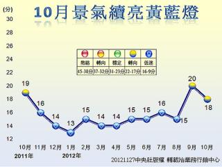中國臺灣網(wǎng)11月27日消息 據(jù)臺灣“中央社”報道,臺當(dāng)局“經(jīng)建會”今天公布臺灣經(jīng)濟(jì)10月景氣燈號,連續(xù)第2個月亮出黃藍(lán)燈。由于同時指標(biāo)止跌回升,官員分析,臺灣景氣已逐漸脫離低緩狀況,應(yīng)已脫離最壞情況,但復(fù)蘇力道微弱。