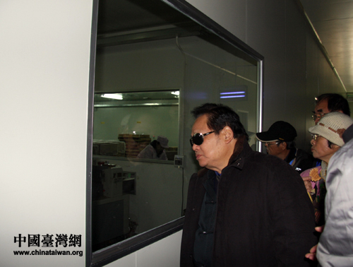 臺灣杰出農(nóng)業(yè)專家發(fā)展協(xié)會秘書長黃達(dá)聰先生參觀隨州食品加工企業(yè)生產(chǎn)工作間。(中國臺灣網(wǎng) 黃艷艷 攝)
