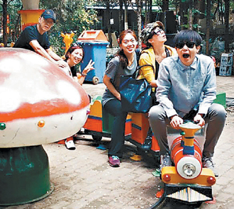 鄧九云(右三)與何韻詩(shī)(右一)及詩(shī)爸(左一)、詩(shī)媽(左二)一起出游。圖片來(lái)自臺(tái)媒