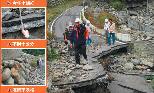中國臺灣網(wǎng)12月4日消息 據(jù)臺灣《聯(lián)合報》報道,臺灣南投縣長李朝卿涉嫌向承包商索賄弊案延燒,臺當局“公共工程委員會”昨(3日)到信義鄉(xiāng)神木村抽測聯(lián)外道路,發(fā)現(xiàn)路面瀝青厚度不夠,擋土墻灌漿不足,到處可見的坑洞有如豆腐渣,搖頭直說:“目測就知有瑕疵,怎么抵擋風災(zāi)?”
