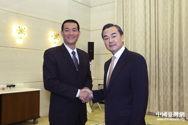 中共中央臺辦、國務(wù)院臺辦主任王毅今天下午在北京人民大會堂會見了臺灣鄉(xiāng)鎮(zhèn)市民代表會聯(lián)合總會蔡詠锝一行。(中國臺灣網(wǎng) 于斯文 攝)