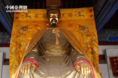 頭部和手部被鍍金的劉備像。(中國臺灣網(wǎng) 焦源源 攝)