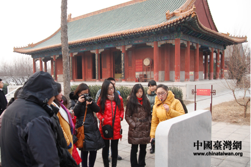 網(wǎng)媒記者聽工作人員講解文物細(xì)節(jié)。(中國臺灣網(wǎng) 焦源源 攝)