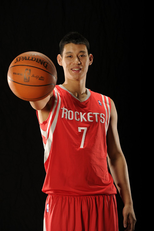 身披火箭隊7號戰(zhàn)袍的林書豪,選票數(shù)暫居西部第3(圖片來源:網(wǎng)絡媒體)