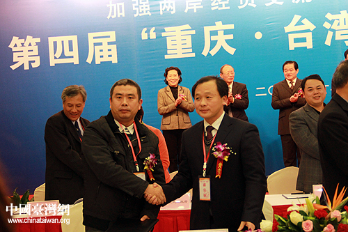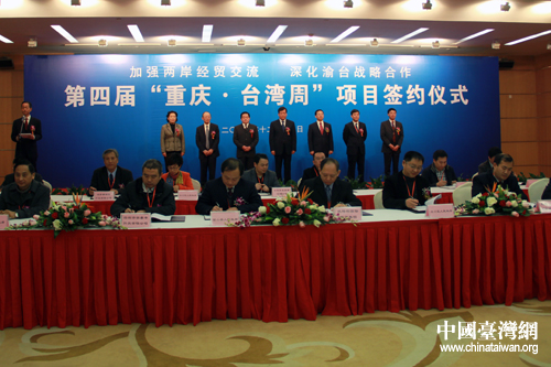 中國臺(tái)灣網(wǎng)12月14日重慶消息 第四屆“重慶·臺(tái)灣周”合作項(xiàng)目簽約儀式于14日11時(shí)許舉行,重慶7個(gè)區(qū)縣與臺(tái)商簽訂29項(xiàng)合作協(xié)議,投資總額達(dá)290多億元人民幣。
