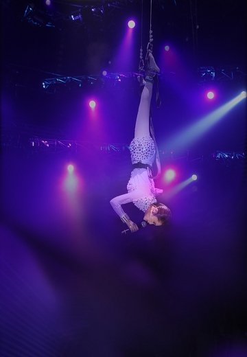 楊丞琳被倒吊至舞臺3米高,完美演出“倒吊獻(xiàn)唱”(圖片來源:臺灣媒體)