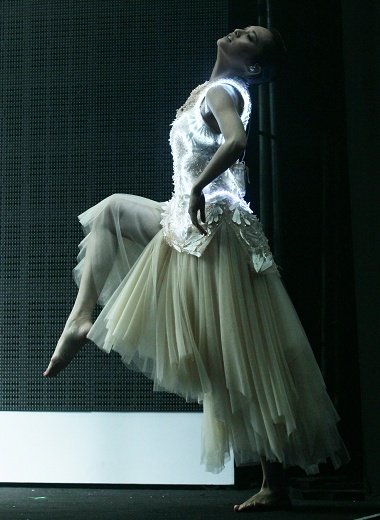 在演唱《想幸福的人》時大秀苦練2個月的現(xiàn)代舞(圖片來源:臺灣媒體)