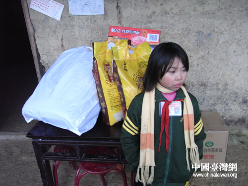 頂新康師傅提供的物資送到了留守兒童豆秋的家里(中國臺灣網(wǎng)記者 蕪同 攝)
