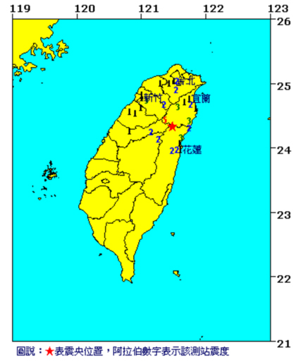 中國臺灣網(wǎng)12月23日消息 據(jù)臺灣媒體報道,臺灣今天下午2時13分發(fā)生里氏4.3級地震,震中位于花蓮縣秀林鄉(xiāng),震源深度9.3公里。臺灣中北部皆有感,最大震度為宜蘭縣5級,花蓮縣太魯閣、新竹縣竹東震度則達(dá)到3級。