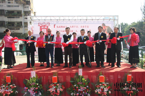 12月26日,山西關(guān)公文化圖片展在臺中靈圣宮開幕,圖為開幕式剪彩儀式。(中國臺灣網(wǎng)發(fā) 戚泉 攝)