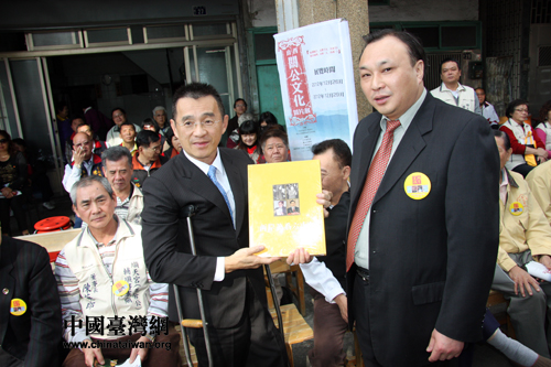 《兩岸關(guān)系》雜志社工作人員向臺中市副市長徐中雄贈送紀(jì)念品。(中國臺灣網(wǎng)發(fā) 戚泉 攝)