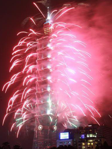 和去年一樣長(zhǎng)達(dá)188秒的2013臺(tái)北101跨年煙火秀精彩登場(chǎng),估計(jì)有85萬(wàn)人到場(chǎng)觀賞。圖片來(lái)自臺(tái)灣今日新聞網(wǎng)
