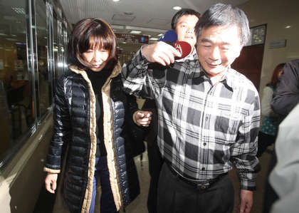 陳蓮珠(左)與郭人才(右)庭訊后離去。(圖片來自臺媒)