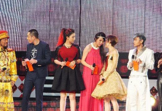 今年的壓軸大戲由“甄嬛幫”一手包辦,孫儷、蔣欣、李東學(xué)、蔡少芬4人除了輪番接唱,蔣欣還首度在臺(tái)灣演唱偶像張惠妹的《姐妹》,最后更與孫儷一起與扮演皇帝的張菲互動(dòng)。不過(guò)“皇后”蔡少芬、“華妃”蔣欣和“甄嬛”孫儷,在臺(tái)上絲毫不見(jiàn)劇中的煙硝味,蔣欣也沒(méi)和“死對(duì)頭”孫儷死掐,3個(gè)女生在臺(tái)上嘰嘰喳喳不停聊天,感情熱絡(luò)。