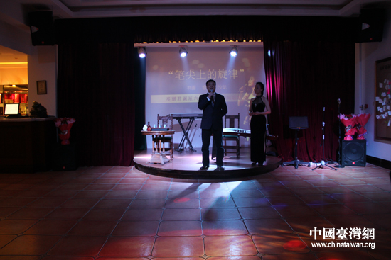 北京鄧麗君音樂主題餐廳總經(jīng)理鄭榮斌在“筆尖上的旋律:書畫、音樂、沙龍——鄧麗君60周年冥誕紀念活動”上致辭。(中國臺灣網(wǎng) 何建峰 攝)