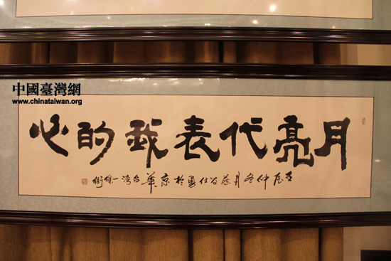 書法家作品“月亮代表我的心”。(中國臺灣網(wǎng) 何建峰 攝)