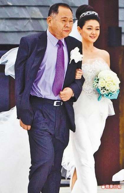 大S(右)前年3月在海南島挽著S爸出嫁。圖片來源:臺(tái)灣媒體