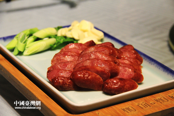 香腸臘腸是臺(tái)灣美食中的精粹之一。大師傅用腸衣自灌,出品的香腸軟硬適中,色澤紅潤(rùn),入口飄香。特別值得一提的是,這香腸要配上青蒜一起享用,才能吃出地道的臺(tái)灣味道。