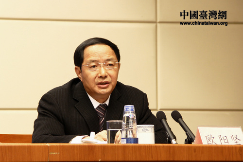 甘肅省委副書記歐陽堅(jiān)介紹相關(guān)情況。(中國臺(tái)灣網(wǎng) 郭瑩瑩 攝)