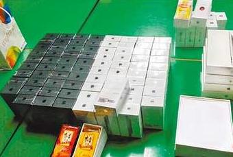 林嫌將飲料和白紙裝入iPhone、iPad空盒內(nèi),包膜后從外觀難辨真假。(圖片來(lái)自臺(tái)媒)