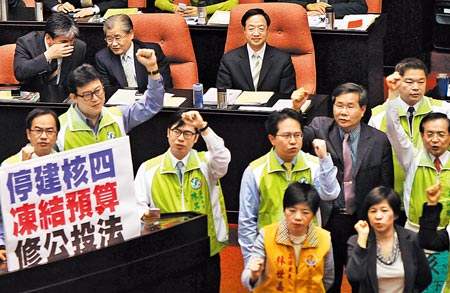 中國臺灣網(wǎng)2月27日消息 據(jù)臺灣《中國時報》報道,臺當(dāng)局“行政院長”江宜樺日前宣布將核四停建與否交付全民“公投”,再為延燒多時的核四爭議投下強力震撼彈,臺灣“立法院院會”昨(26日)天也因此近乎停擺。經(jīng)多次協(xié)商后,朝野黨團最終達成共識,核四工程除已發(fā)包及安全檢測工作外,暫停施工;“公投”之前,核四不得辦理追加預(yù)算或放置燃料棒。至于“公投”門檻是否下修,則需于舉行“公投”前,由朝野協(xié)商決定。