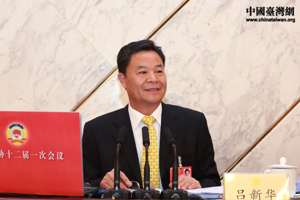 3月2日下午,全國政協(xié)十二屆一次會議新聞發(fā)布會在北京人民大會堂新聞發(fā)布廳舉行,大會發(fā)言人呂新華介紹會議情況,并回答記者的提問。圖為大會發(fā)言人呂新華。(中國臺灣網(wǎng) 于斯文 攝)