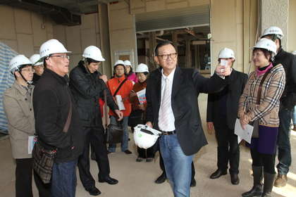 邱復生(著西裝外套者)向上海旅游業(yè)人士介紹商店街規(guī)劃。(圖片來自臺媒)