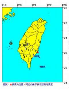 臺灣臺東地區(qū)發(fā)生4.3級地震。(圖片來自臺媒)