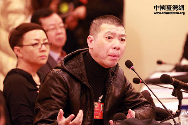 馮小剛在全國政協(xié)會議分組討論中表示,有意執(zhí)導抗美援朝題材電影。(中國臺灣網(wǎng) 于斯文 攝)