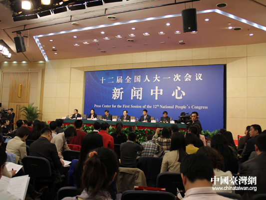 十二屆全國(guó)人大一次會(huì)議7日在梅地亞中心舉行記者會(huì),科技部部長(zhǎng)萬(wàn)鋼就“創(chuàng)新驅(qū)動(dòng)發(fā)展戰(zhàn)略”的相關(guān)問(wèn)題回答了中外記者的提問(wèn)。(中國(guó)臺(tái)灣網(wǎng) 楊麗 攝)