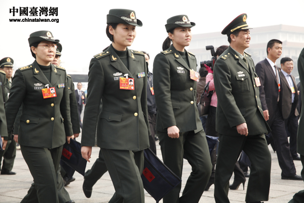 解放軍代表、中國航天女英雄劉洋(左二)步入人民大會(huì)堂。(中國臺(tái)灣網(wǎng) 何建峰 攝)