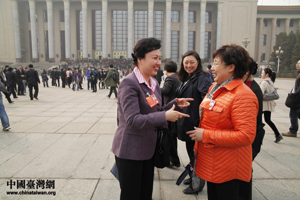 北京代表團(tuán)的2位女性代表入場(chǎng)前愉快交談。(中國臺(tái)灣網(wǎng) 何建峰 攝)