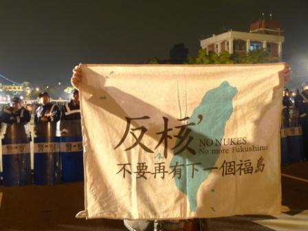 臺灣環(huán)保團(tuán)體在3月9日發(fā)動廢核游行,訴求停止核四裝填燃料、停止危險核電,核一二三盡速除役。圖片來自臺灣今日新聞網(wǎng)