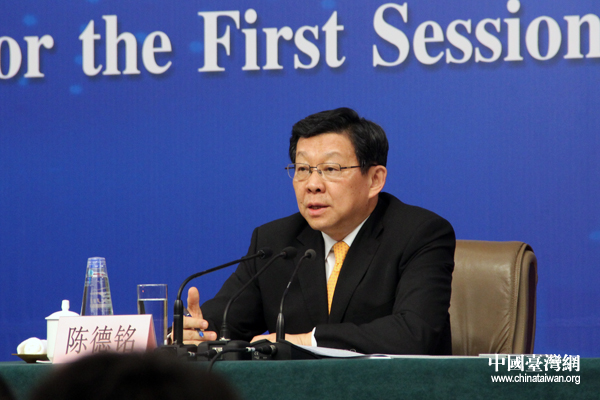 中國臺灣網(wǎng)3月9日消息 8日上午,十二屆全國人大一次會議新聞中心舉行記者會,商務(wù)部部長陳德銘就“發(fā)展國內(nèi)外貿(mào)易和促進經(jīng)濟合作”的相關(guān)問題回答中外記者提問。臺灣多家媒體推出人物側(cè)寫版塊,向島內(nèi)民眾介紹商務(wù)部長陳德銘:臺灣《旺報》稱他宛若溫雅學(xué)者,彬彬有禮,但該硬的地方也非常銳利絕不示弱;《工商時報》認為他是官場上的鐵漢,生活中的柔情阿公;《聯(lián)合報》則贊譽他平易近人,讓人耳目一新,更熟悉兩岸事務(wù)。