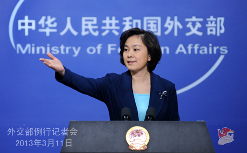 2013年3月11日,外交部發(fā)言人華春瑩主持例行記者會(huì)。 圖片來(lái)源:外交部網(wǎng)站
