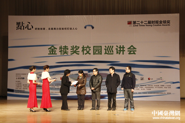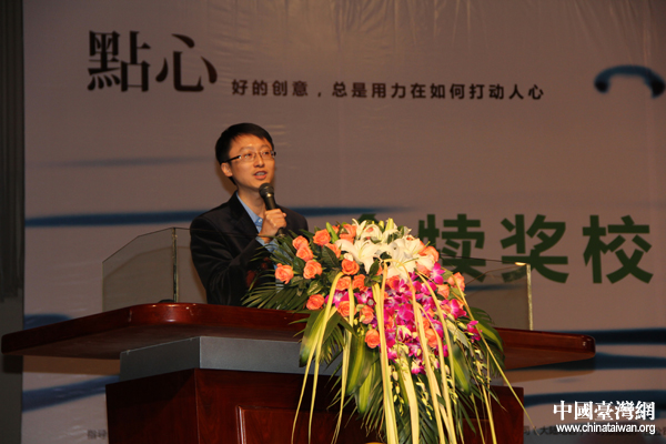 活動(dòng)籌委會(huì)代表中國傳媒大學(xué)廣告學(xué)院楊懿老師發(fā)表致辭。(中國臺(tái)灣網(wǎng) 張潔 攝)